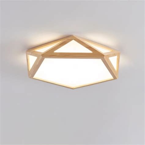 Diamond Wooden Ceiling Lamp Φ 20.4 X H 3.9 / Dia 52cm X H 10cm (Power: 24W) / Wood Color / Three-Color Changing Light
