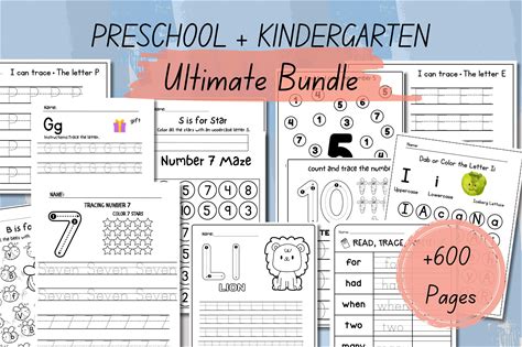Preschool Pre-K + Kindergarten Learning Bundle | +600 Pages | Printable Activity Worksheets | Coloring | Dot To Dot | Tracing | Alphabet