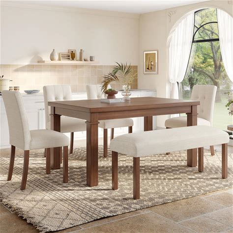 Harper & Bright Designs 6-Piece Farmhouse Dining Table Set 72" Wood Rectangular Table, 4 Upholstered Chairs With Bench (Walnut)