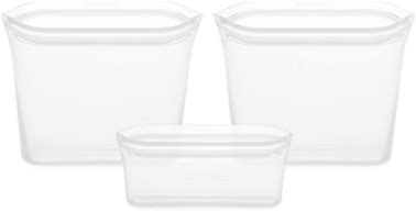 Zip Top Reusable 100% Platinum Silicone Food Storage Containers - Made In The USA - 3 Cup Set - Gray