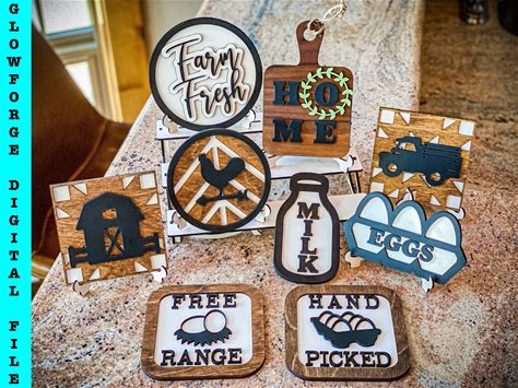 SVG Bundle | Farmhouse Tiered Tray Glowforge Svg Files | Farm Fresh SVG | Kitchen Tray Decor | Tiered Tray SVG