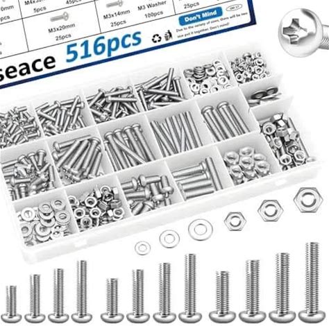 516Pcs Nuts And Bolts Assortment Kit 21 Sizes M3 M4 M5 M6 Nuts Washers Screws For Machinery Furniture Automotive
