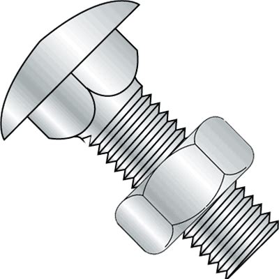 1/4"-20 X 6" Carriage Bolts With Nuts, Steel, Zinc Plated - 100 Pack