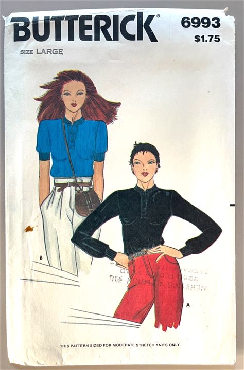 1970'S Butterick Misses' Top Pattern 6993 Size L Uncut