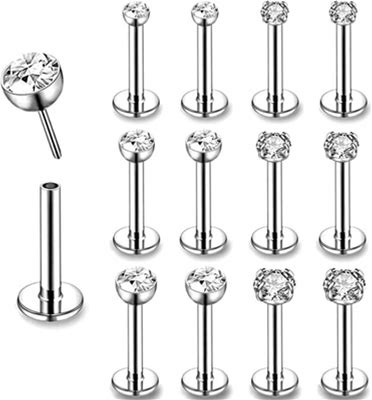 12Pcs/Lot 16G Stainless Steel Lip Studs 2-4mm Cz Labret Lip Piercing