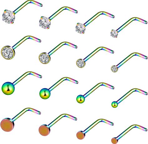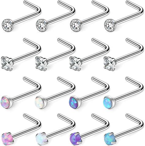16-32Pcs Nose Stud Ring Surgical Steel L Shaped Nose Stud Lip Helix Piercing 20G