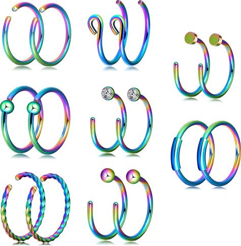 32Pc Surgical Steel Nose Hoop Ring L-Shape Curved Nose Stud Ear Lip Piercing 20G