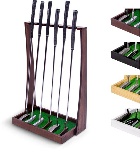 Lenwen Golf Putter Stand Wooden Display Rack Golf Club Holder Stand Floor Display Rack Club Organizer For Storage Sports Indoor Home Office Simulator