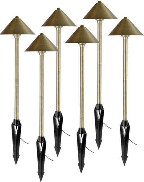 Solid Brass Landscape Path Light - 6" Two-Tier Cone Shade - Drop-In Fixture With G4 LED Bulb - 105 Lumens - 6500K - Cool White