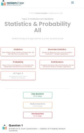 Revision Village Math Aa Sl - Statistics & Probability - Medium Difficulty Questionbank (Pdf/Epub Version)