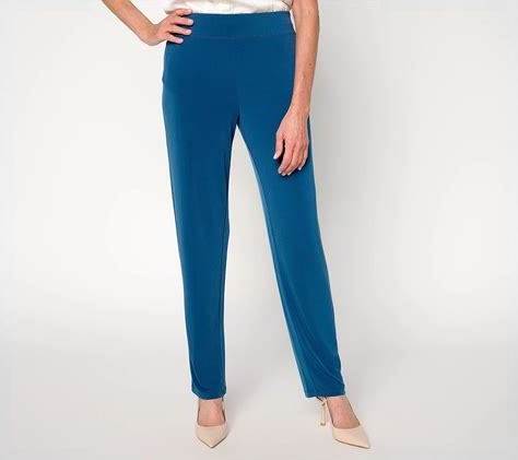 Susan Graver Modern Essentials Reg Liquid Knitslim Leg Pants, Size Medium, Midnight Ocean