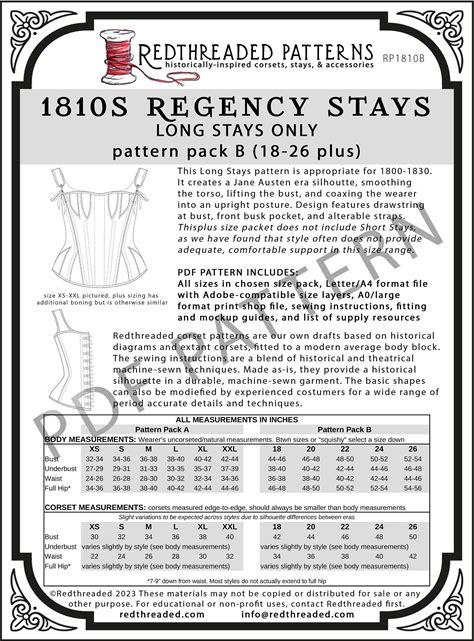 1810S Regency Long Stays PDF Pattern - Pack B (Size 18-26 Plus)