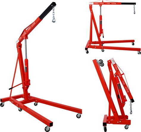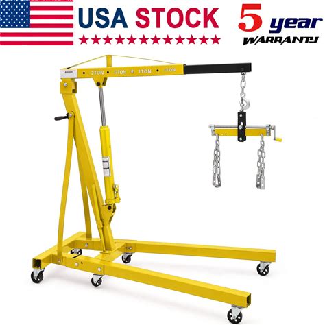 2 Ton Engine Hoist With Lever Stabilizer, 4400LBS Hydraulic Heavy Duty Crane Lifter With 6 Casters, Folding Cherry Picker With Telescopic Boom, Engine Hoist Lift For Workshop, Warehouse, Yellow(Red/With Lever)