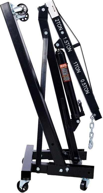 2 Ton Engine Hoist, Folding Cherry Picker Engine Hoist With Lever And 6 Casters, Heavy Duty Hydraulic Shop Crane, 4400 Lbs Heavy Duty Engine Hoist Crane Lift For Garage, Workshop(Black/With Lever)