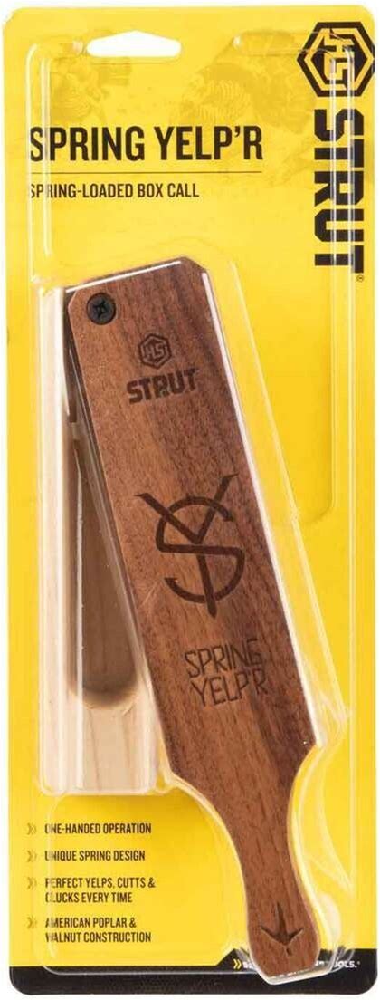 HS Strut® SPRING YELP'r Turkey Box Call Spring Loaded One Hand Poplar/Walnut