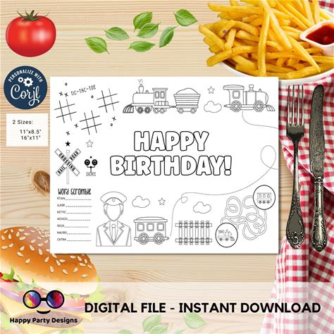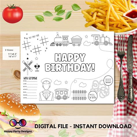 Train Printable Activity And Coloring Pages, Personalized Placemat, Train Birthday, Printable Template, Steam Engine Choo Choo Digital NTCT5