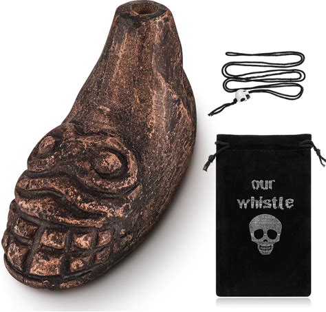 Aztec Death Whistle Scream Silbato Azteca With Gift Bag Necklace Cord Loudest Up To 125+ Decibels Authentic Human Sounding Aztec War Whistle For