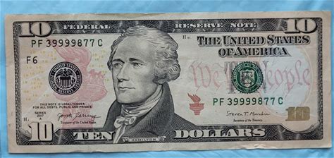 Rare Serial Number 10 Dollar Note