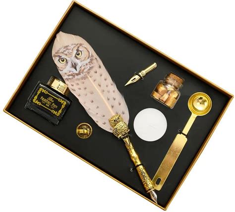 Calligraphy Dip Pen Set Vintage Owl Pattern Feather Fountain Pens For Writing Quill Gift Box With
