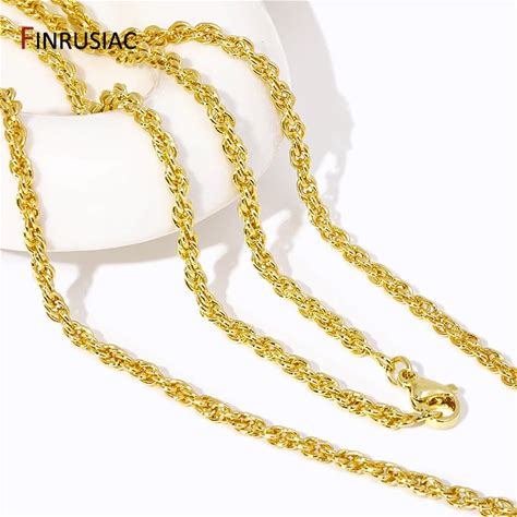 60 cm Brass Braid Necklaces Chain 18K Gold Plated Brass Twists Chain Necklace Collar Hip Hop Jewelry