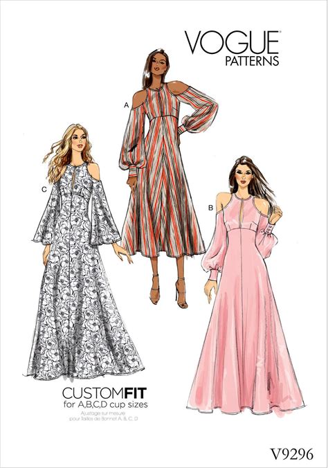 Vogue Pattern 9296, Misses' Dress With Cold Shoulder Detail, Sizes: 6-8-10-12-14, UNCUT Pattern