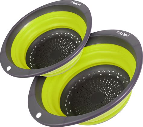 "Balevi Collapsible Strainers For Kitchen - Collapsible Colander Set Of 2 Made Of Silicone - Collapsible Strainer With Little Pegs To Keep Food