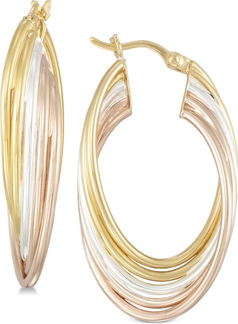 Set Of Three Textured Hoop Earrings In 14K Tri-Gold Vermeil And Sterling Silver - Tri-Color