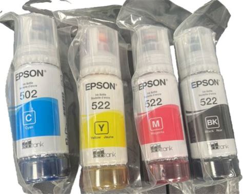 Genuine Epson 522 Ink Bottles 4 Pack For Et-2720 Et-2800 Et-2803