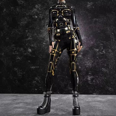 Cool Cyber Armour Jumpsuit Cosplay Bodysuit Steampunk Punk Costume Halloween Party Shows Perfermence