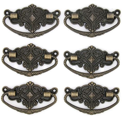 LXZ 6 Pcs Vintage Antique Brass Bail Pull Handle For Wooden Drawer Cabinet Cupboard, Length 2.8-In (7.1 Cm) And Height 1.7-In (4.4 Cm)