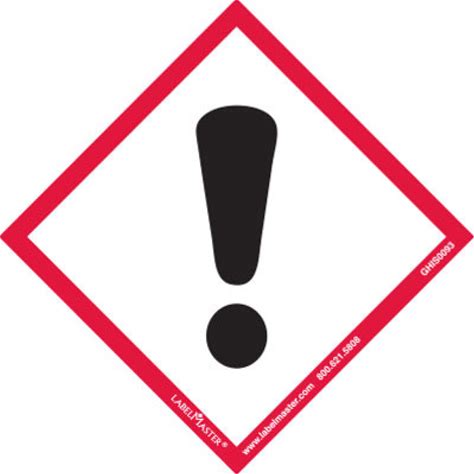 Ghs Safety GHS Label: Exclamation Mark Pictogram, Red/White, 2 in Ht, 2 in Wd, 0.0035 in Thick, Square, 500 PK [PK/500] Model: GHS1309