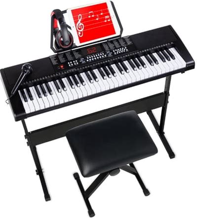 Best Choice Products 61-Key Beginners Electronic Keyboard Piano Set W/ Led, 3 Teaching Modes, H-Stand, Stool - Black