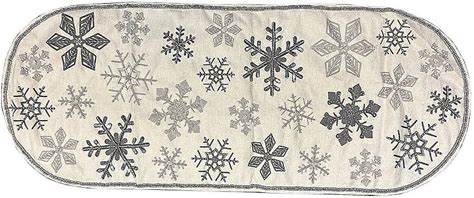 Temp-Tations Holiday 13"X35" Table Runner With Beaded Embellis,Grey Snowflake