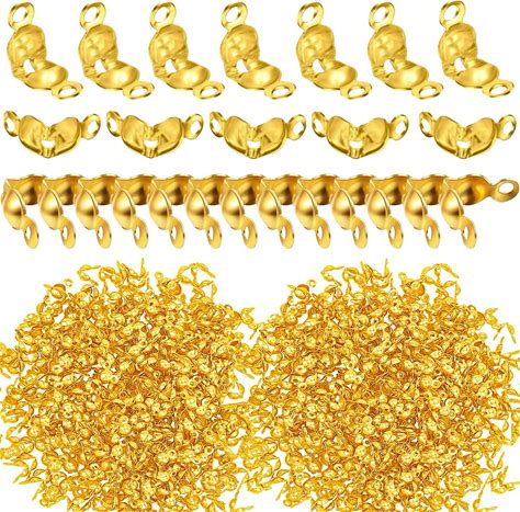 1500 Pieces Beads Tips Knot Covers Clamshell Crimp Tips Beads Set Calotte Ends Knot Covers Fold-Over Bead Covers For Jewelry Making DIY Bracelet