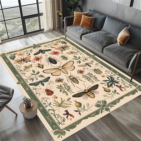 Insect Print Rug: Green & Yellow Beetle Pattern Area Rug