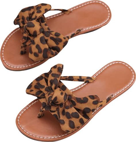 GORGLITTER Women's Leopard Print Bow Flat Sandals Slip On Open Toe Flip Flops Slide Sandal