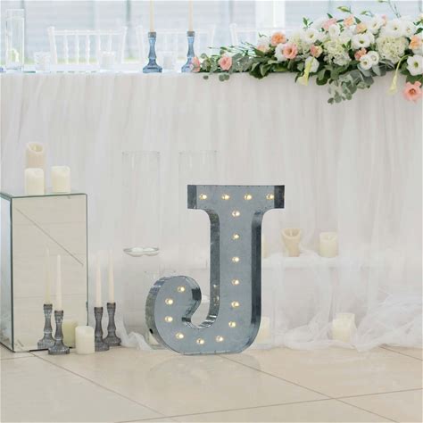 Vintage Galvanized Metal Marquee "J" Letter Light Cordless With 16 Warm White Led 20" - Weddings, Events By Efavormart Party Shop
