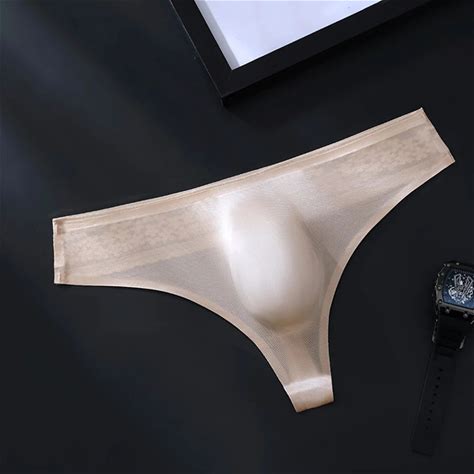 Men Sexy Lace Seamless Ice Silk G-String Underwear Bulge Pouch Elastic Thongs Seamless Jockstrap