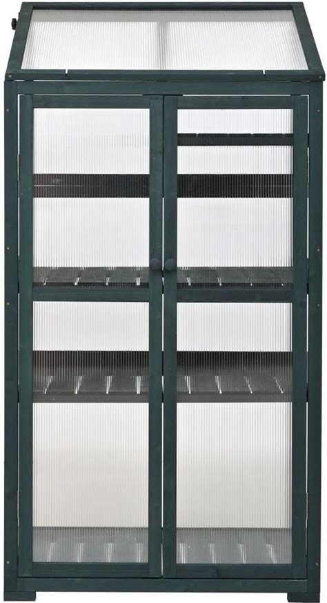 Gulches 62Inch Wood Greenhouse Portable Cold Frame With Wheels Adjustable Shelves For Indoor Outdoor Use Forest Green