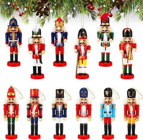 12 Pieces Christmas Nutcrackers Ornaments Wooden Crackers Hanging Decorations Soldier Ornament Nutcrackers Figures For Home Christmas Trees Xmas Toy