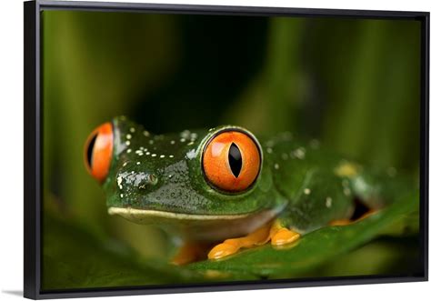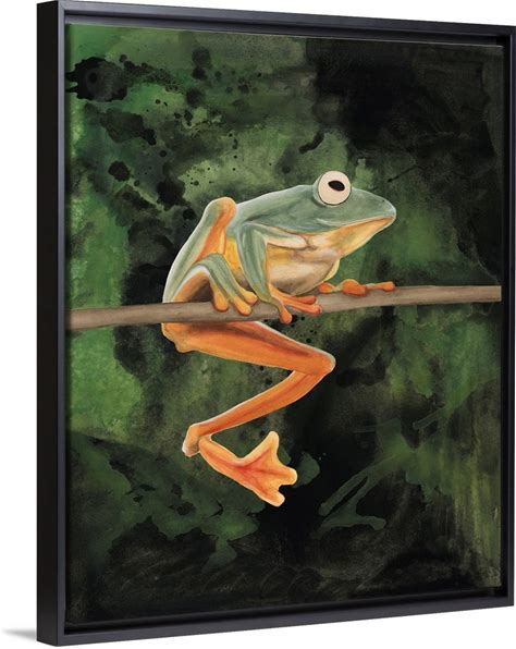 Watercolor Tree Frogs III | Large Stretched Canvas, Black Floating Frame Wall Art Print | Great Big Canvas