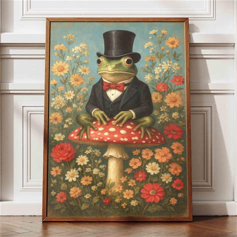 Frog On Toadstool Art Print: William Morris Style Whimsical Decor