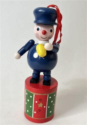 Vtg Wooden Thumb Push Button Puppet Collapsible Ornament Conductor