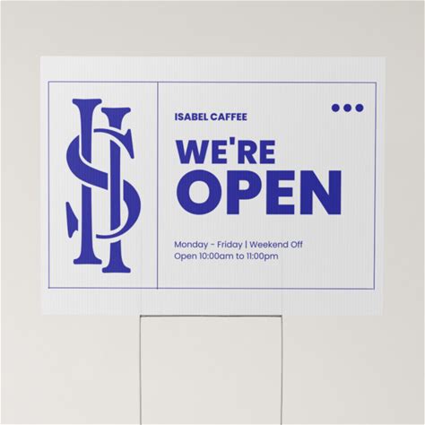 Canva Simple We're Open Yard Sign, Blue/White, Pack Of 1, 24" X 18"