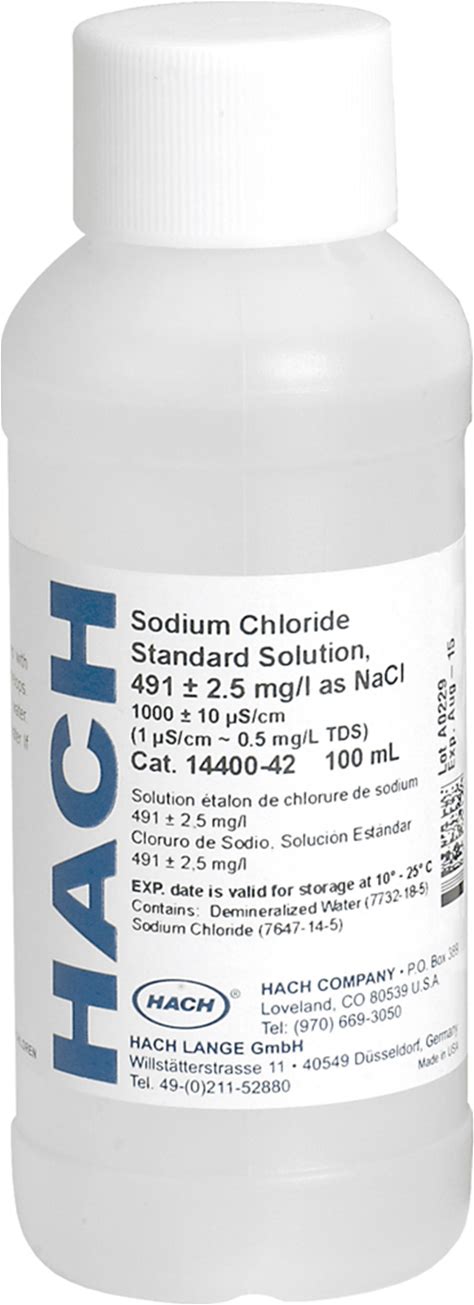 Hach Sodium Chloride Standard Solution 491 Mg/L Nacl (1000 S/Cm) 100 Ml 1440042