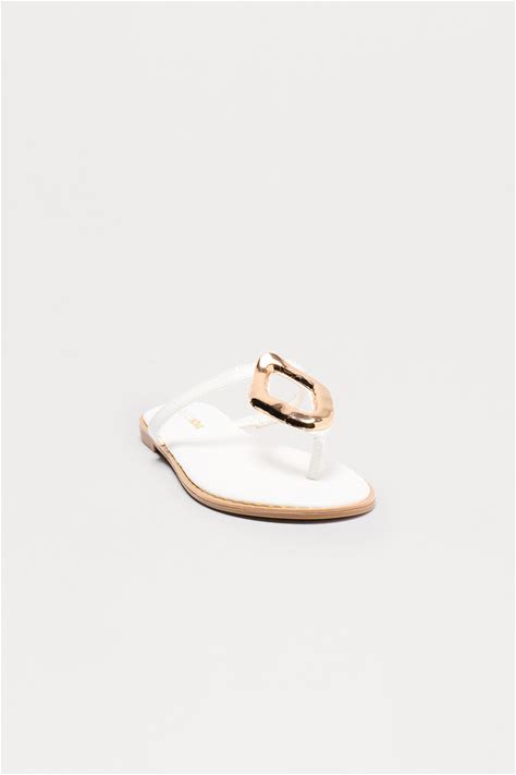 Women's Montie Hardware Flip Flops Heel Shoes In White Size 5.5 | Fashion Nova
