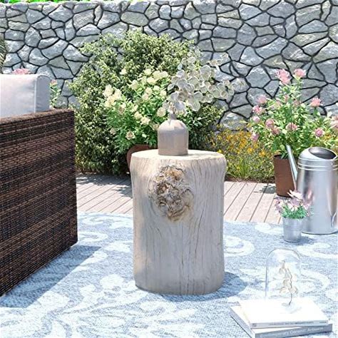 SUNBURY Outdoor Stump Side Table, Faux Wooden Concrete Sid