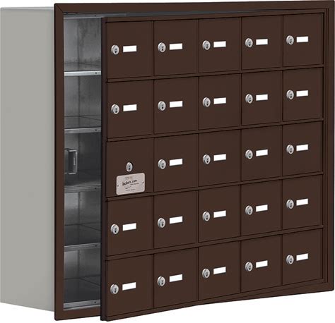 Salsbury Cell Phone Storage Locker - With Front Access Panel - 5 Door High Unit (8 Inch Deep Compartments) - 25 A Doors (24 Usable) - Bronze - Recess