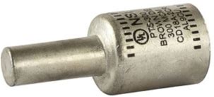 Nsi Pts300 Aluminum, Tin Plated Pin Terminal, 300 Mcm Wire Size, 4/0 Awg Solid Pin (Al/Cu)